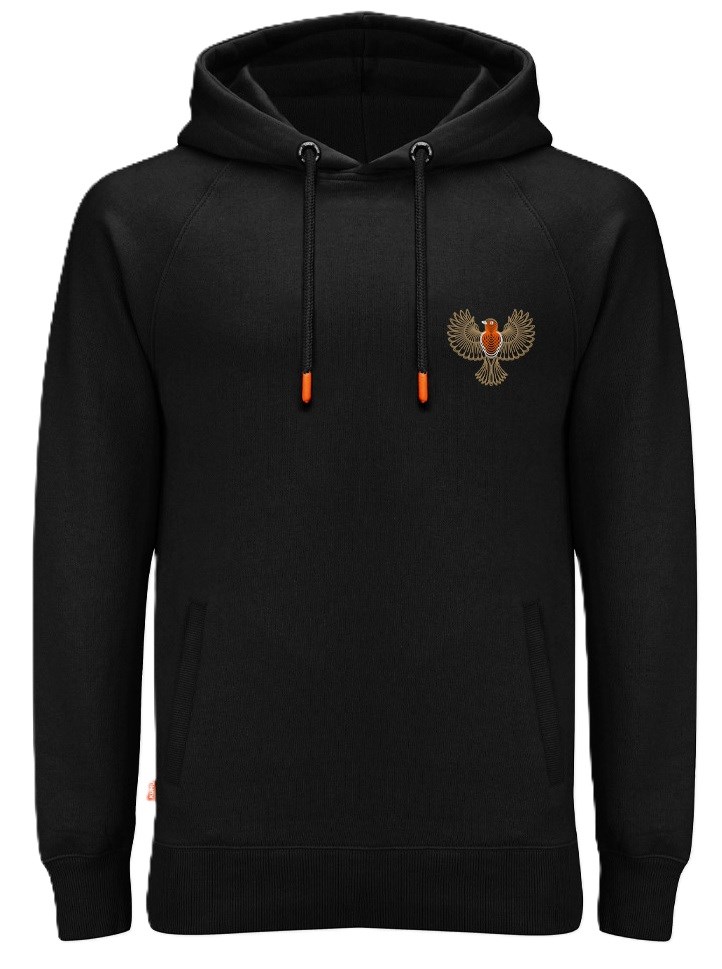 Grafická pocta vtáčikovi, ktorému sa u nás hovorí červienka (Drozd sťahovavý), ktorý sa stal symbolom zimného rybárčenia, pretože svojou malou červenou náprsenkou dokáže rozžiariť aj tie najtmavšie dni. Žiarivá 4farebná sieťotlač využívajúca štýl ilustrácie kľúčovej línie na našej super mäkkej, luxusnej 320g tkanine. Farebne zladené máčané konce šnúr a tkané detaily bočných pútok.
