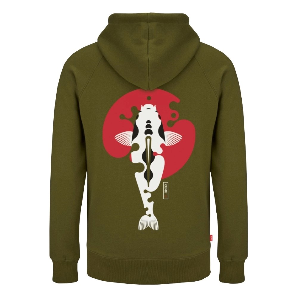 Naša grafika Rising Sun je silne inšpirovaná kultúrou a myslením Ďalekého východu. Počas tvorivého procesu sme študovali použitie červenej farby v japonskom umení a význam za tým. To v kombinácii s láskou ku koi kaprom a ich značeniu viedlo k tomu, čo sa stalo jedným z našich obľúbených grafických kúskov. Dvojfarebná grafika Koi vytlačená na našej super mäkkej látke 320 g/m2 s luxusným omakom v ruke a tkanými detailmi.