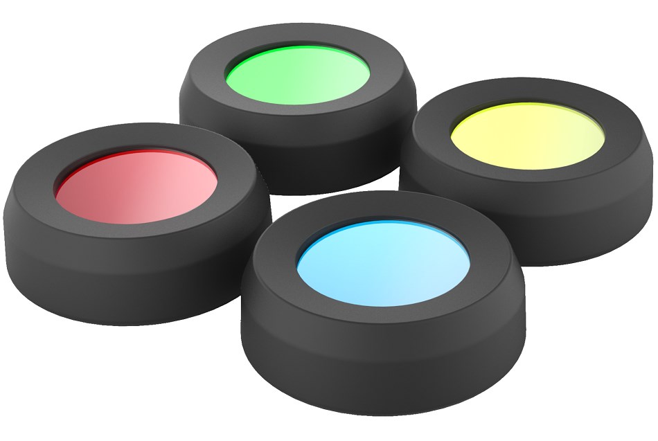 To znamená quatro colour a umožňuje otočnou hlavicou voliť medzi bielou, červenou, modrou, alebo zelenou farbou svetelného kužeľa. To ocenia okrem poľovníkov tiež piloti, záchranári a všetci, ktorí potrebujú rozlišovať farebné signály. Avšak aj ďalšie baterky môžete o túto funkciu vylepšiť. Stačí dokúpiť sadu farebných filtrov, ktoré možno na vybrané typy čeloviek jednoducho nasadiť. Tieto štyri farebné filtre sú kompatibilné so svetlami Ledlenser MH10, NEO 10R, H14R.2, H14.2, H8R.