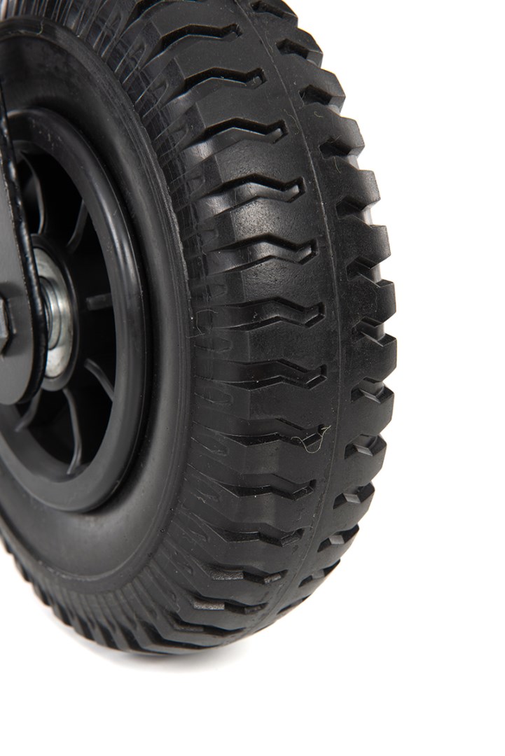 •Pevné plastové kolesá a plné gumové pneumatiky.