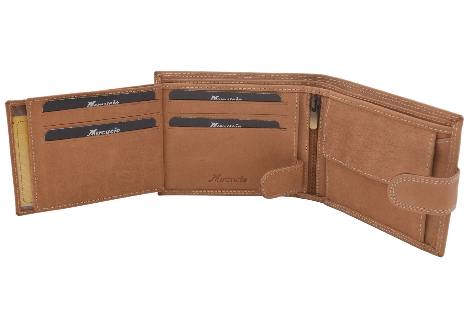 Peňaženka je ozdobená dvojitým obšitím, čo podčiarkuje tvar peňaženky. Vnútro, tak aj vonkajšia strana, má zapínanie, takže pokiaľ preferujete zapínanie, tento model je pre vás ako stvorený. Peňaženka obsahuje 7 priehradiek na karty a doklady, a dokonca aj niekoľko priehľadných prepážok, ktoré sú vhodné pre fotky. Mincovník je dostatočne priestranný aj pre väčší objem mincí. Tento priestor môže byť zväčšený o jednu zipsovú priehradku uprostred peňaženky. Bankovky si môžete uložiť do dvoch priehradiek na bankovky alebo si ich môžete schovať do tajných univerzálnych priehradok.