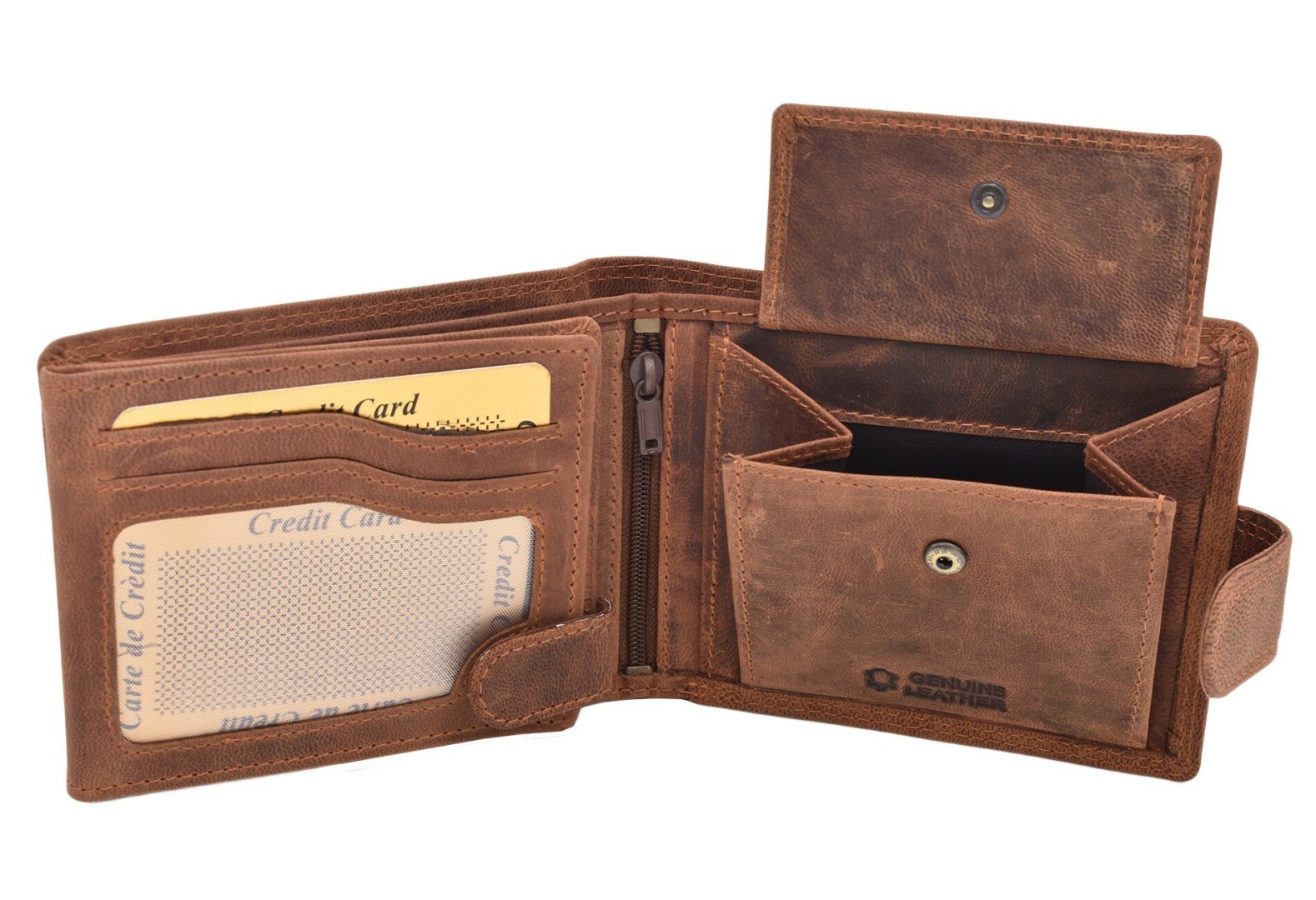 Vnútro ponúka až 9 priehradiek na karty, ako aj priehľadné priehradky vhodné na uloženie fotiek alebo dokladov s fotkami. Neoddeliteľnou súčasťou je aj vrecko na mince, ktoré sa nachádza vo vnútri, hneď vedľa zipsovej priehradky.