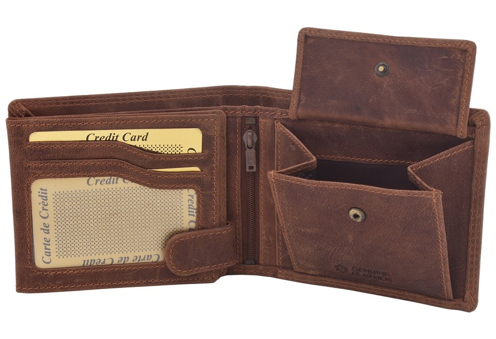 Kvalitná pánska peňaženka na výšku s laserovým motívom. Peňaženka je vybavená priehradkami na karty, doklady, mince a bankovky. Laserový motív oživuje celú peňaženku a mení ju na skvelý tematický darček.