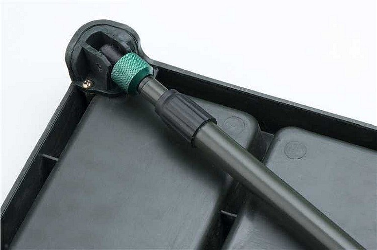 Veľký kaprársky stolík s priehradkami. Nohy s bajonetovým systémom výsuvu sú aretovanou skrutkou v otvorenom stave. Maximálna výška stolíka je 45 cm.