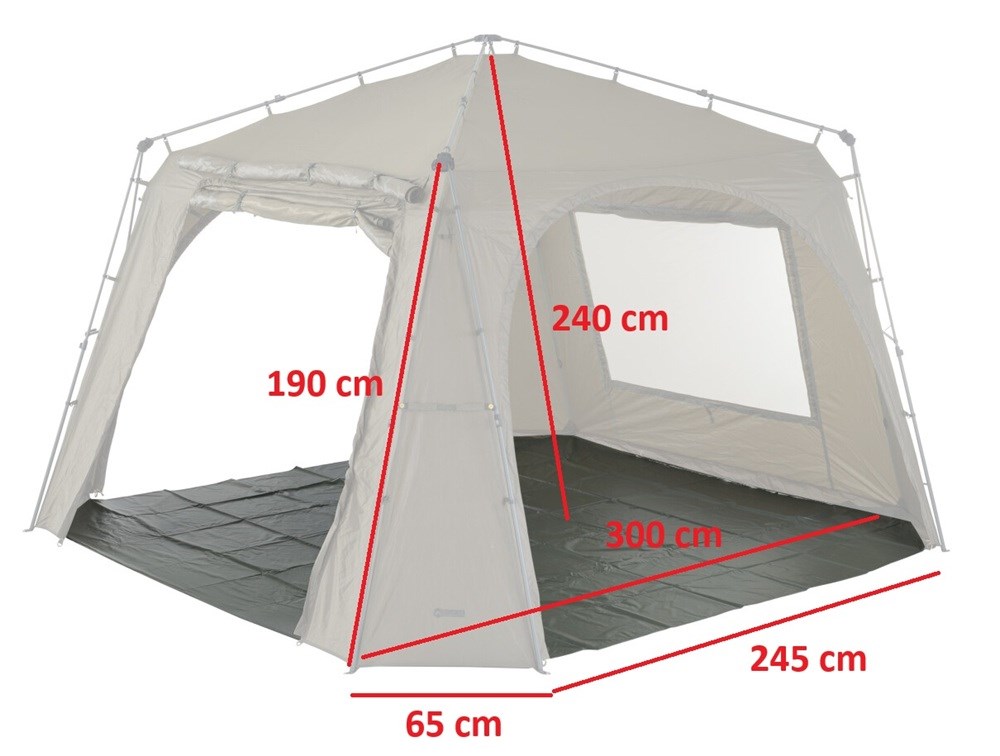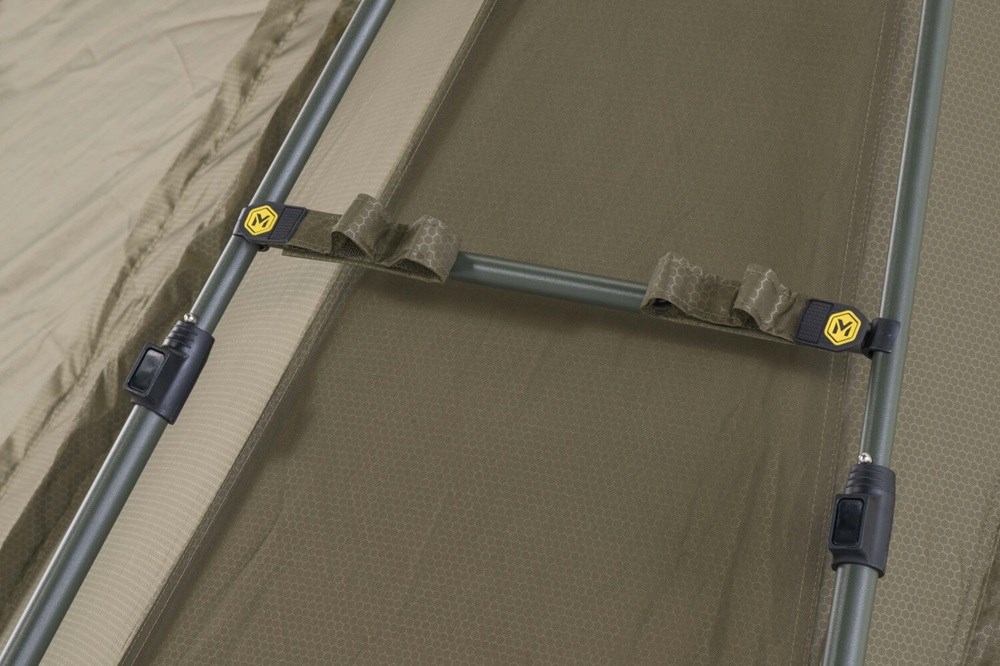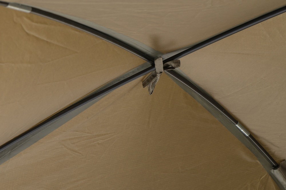 Ponúka však oveľa viac než len veľký priestor, dvere a okná. Jeho základom je mimoriadne stabilný rám so zdvojenými stojnami, prepojenými rozpernými tyčkami s pevnými klipmi na oboch koncoch. Tie výrazne spevňujú konštrukciu a priehyb stojien. Dve z týchto rozperných tyčiek sú osadené praktickými držiakmi prútov na suchý zips. Všetky hlavné časti rámu sú teleskopické a sú vybavené spoľahlivým systémom na jednoduchú fixáciu výsuvu. Teleskopické časti rámu taktiež umožňujú dosiahnutie kompaktnej prepravnej veľkosti a zaisťujú aj rýchle a pohodlné rozloženie / zloženie prístrešku. V extrémnych podmienkach je možné ešte zvýšiť stabilitu prístrešku použitím štyroch kotviacich laniek. Zostavenie aj zloženie prístrešku ľahko zvládne jedna osoba. Plášť z materiálu M-TEC300 s hexagonálnou textúrou disponuje vodným stĺpcom 8000mm a zvýšenou mechanickou odolnosťou.