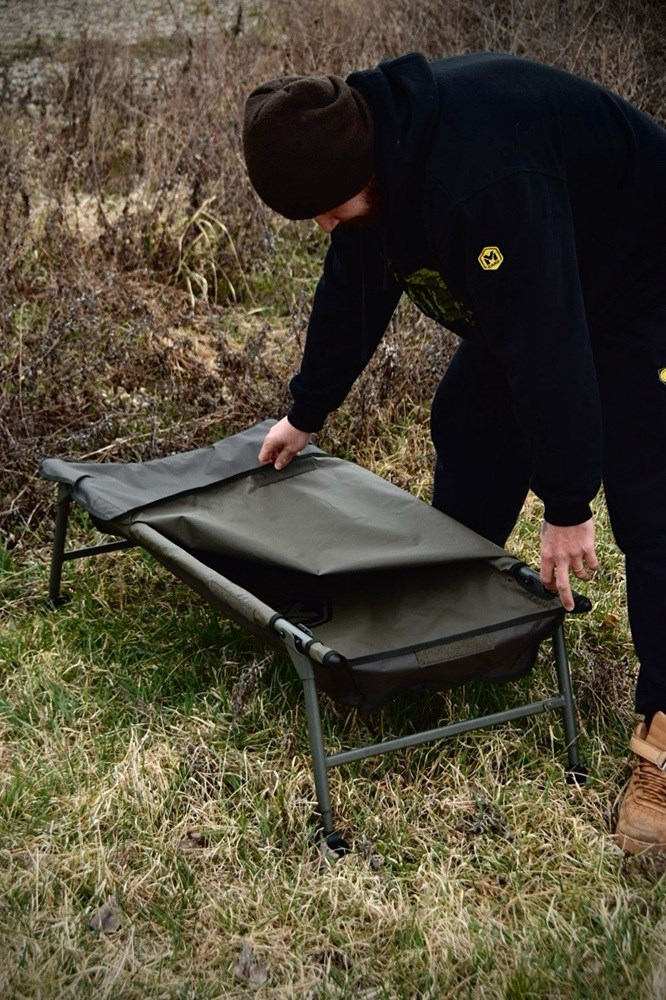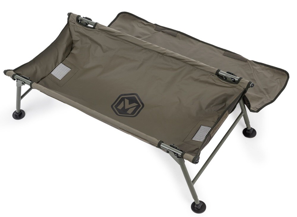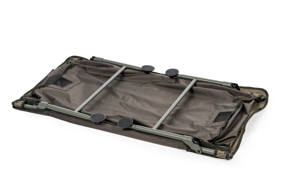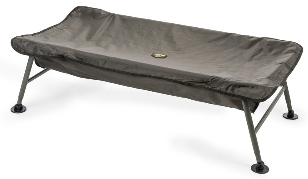 Vanička s ľahkým trubkovým rámom a výklopnými nohami s výkyvnými pätkami proti zaboreniu.