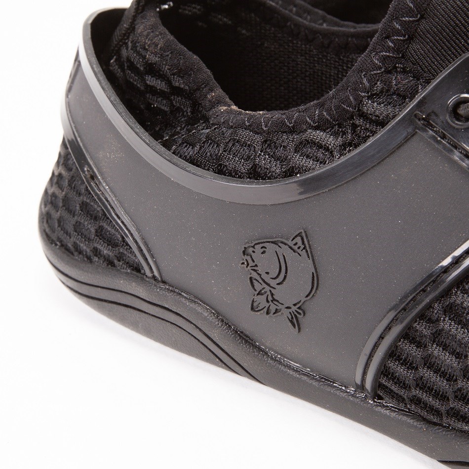 Nash Water Shoe ochráni Vaše nohy pri brodení vo vode. 3D sieťovaná tkanina umožňuje odtok vody a priedušnosť - takže budete vždy v maximálnom pohodlí. Priedušná podrážka taktiež zabraňuje hromadeniu tepla, aby sa zlepšilo pohodlie a hygiena. Elastický strečový strih so sťahovacou šnúrkou. Sú v decentnom čiernom Nash designu.