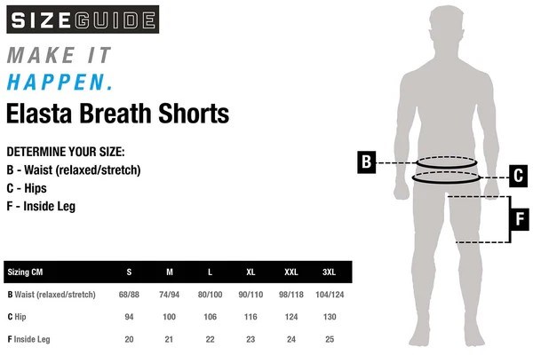 Kraťasy majú rebrovaný pás, šikmé vrecká na zips na prednej strane, zadné vrecko s nášivkou Make It Happen. Ďalej sú vybavené plochou sťahovacou šnúrkou s herringbone vzorom a disponujú najmä dvojitým prešívaním pre vyššiu odolnosť proti roztrhnutiu. Dostupné vo veľkostiach S až XXXL v zelenej, čiernej a Grey Marl farbe.