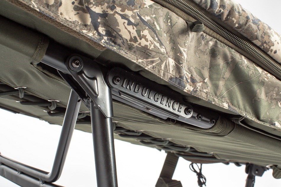 Tieto spacie systémy ponúkajú ešte luxusnejší komfort s podporou pamäťovej, 60mm vysokej peny s najvyššou kvalitou na trhu, ktorá pokrýva celý matrac. Pamäťová pena siaha až po okraje lehátka, takže sa prispôsobí tvaru tela pre čo najpokojnejší a najpohodlnejší spánok. Ďalšou inováciou je predĺžený chrbtový systém na nastavenie tuhosti lehátka. Pamäťová pena, rovnako ako pri domácich posteliach, zvýšila latku komfortu pri spaní na brehu. Vylepšený dizajn matraca je bez tradičných vonkajších polstrovaných lemov, čím sa vytvára úplne rovný nedelený povrch matraca, ktorý tak ešte zväčšuje jeho priestor a Vaše pohodlie! Tieto nové spacie systémy radu Indulgence sú plné inovácií. Majú USB port s vodotesným vreckom tvoreným PVC materiálom pre umiestnenie napájacieho zdroja, ktoré je umiestnené na spodnej strane lehátka pod hlavovou časťou, to umožňuje nabíjanie čeloviek/telefónov a ďalších zariadení v spánku av prípade potreby sú ihneď po ruke. Tieto lehátka sú k dispozícii v osvedčených konfiguráciách SS3 (3 páry nôh) a SS4 (4 páry nôh) v štandardnej a širokej (wide) verzii plus je tu nová kompaktná (compact) verzia vyvinutá pre užívateľov nízkych kompaktných bivakov, ktorí potrebujú maximálnu mobilitu, ale chcú kvalitu a pohodlie radu Indulgence pre všetky ročné obdobia.