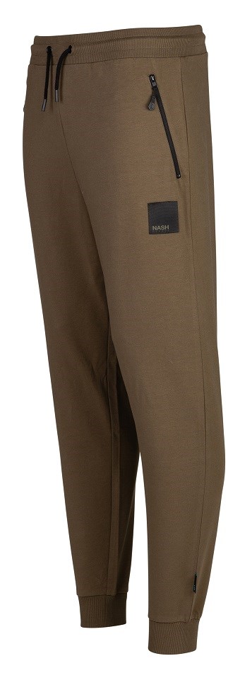 Na teplákoch sú elastické členkové manžety. Sú v klasickej khaki farbe. Tepláky majú dve vrecká na zips. Sťahovacia šnúrka a šnúrky na vreckách sú s motívom Nash.