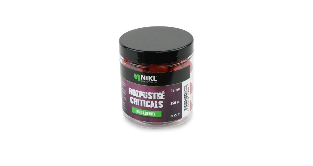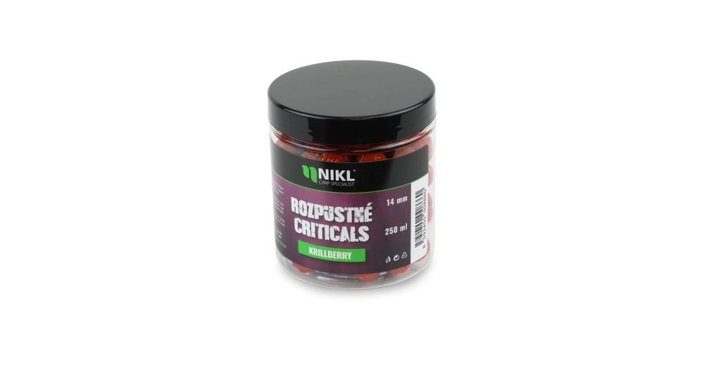 Nikel Rozpustné Criticals boilies Krill Berry 250 ml je skvelou voľbou pre situácie, kedy potrebujete dosiahnuť zábery v čo najkratšom čase. Táto špeciálna nástraha určená iba pod háčik sa po niekoľkých minútach vo vode začne pomaly rozpúšťať a uvoľňovať esencie, atraktory a múčky, čo je pre kaprov mimoriadne príťažlivé. Práve vďaka tejto rýchlej práci ryby pri kŕmení často uprednostňujú nástrahu pred ostatným kŕmením, a vy tak získate výraznú výhodu hneď v prvých fázach lovu.