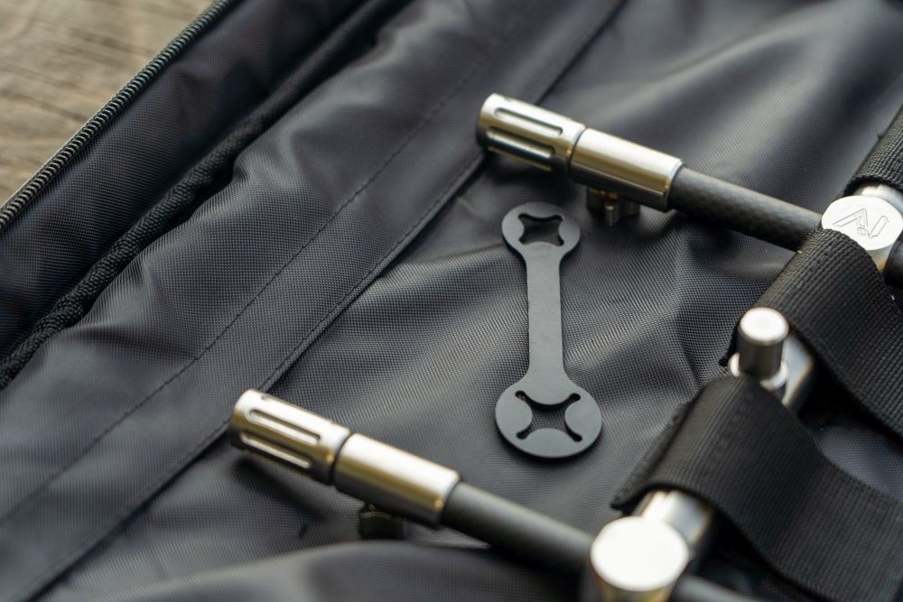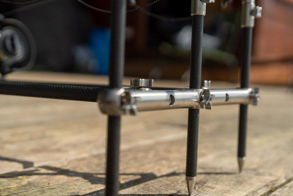 •2x pevné nerezové tyče na prepojenie vidličiek◦predné s dĺžkou 12,5" a zadné 11,5" - umožňuje perfektné umiestnenie špičiek prútov od seba, je vhodné pre všetky navijaky - od kompaktných až po big pit