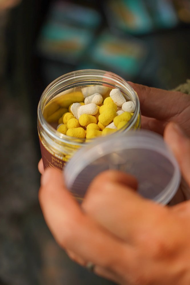 One More Cast Wafters Boosted Fluoro Wafters Paella 100 g 10x14 mm - White & Yellow