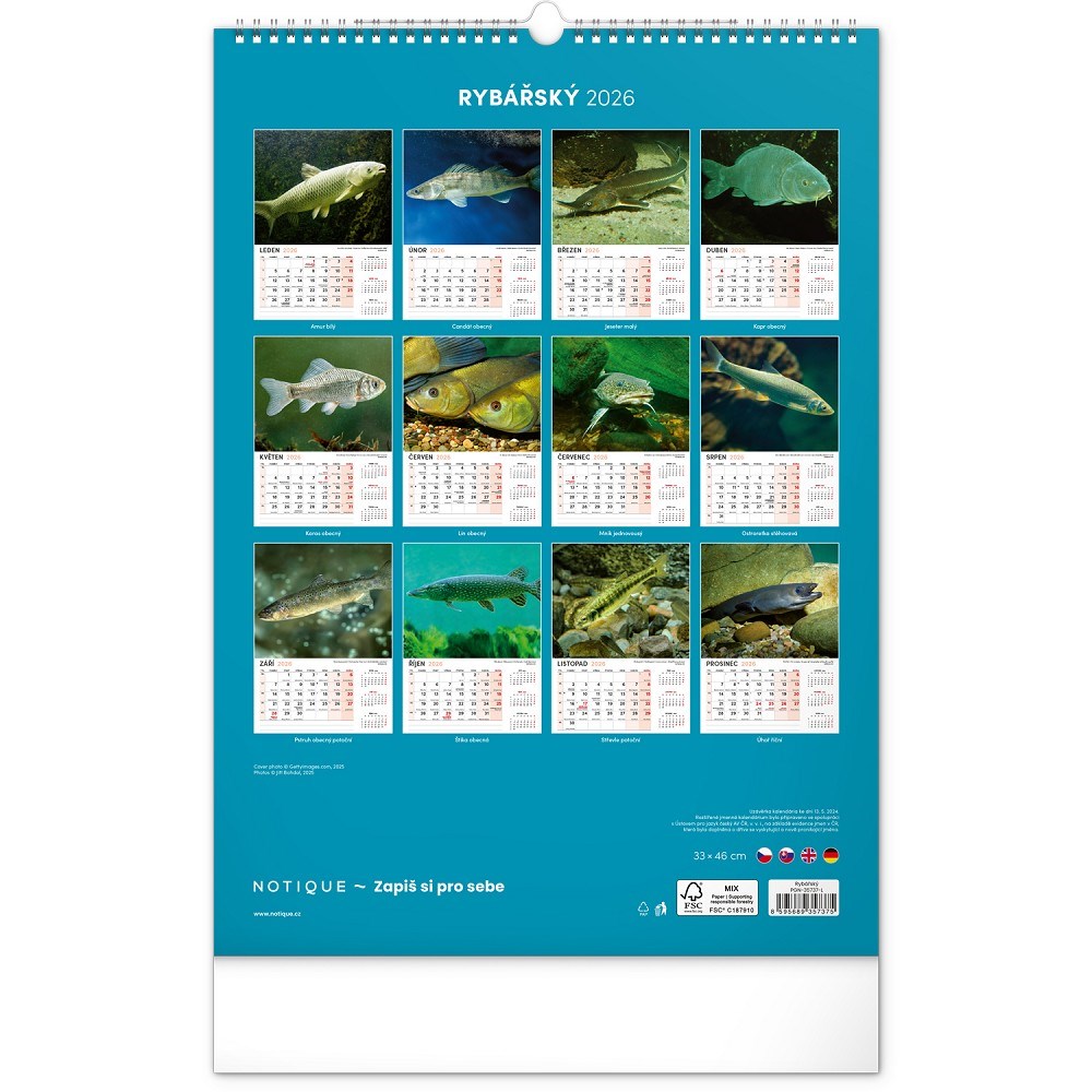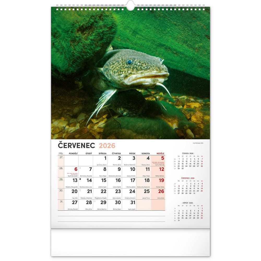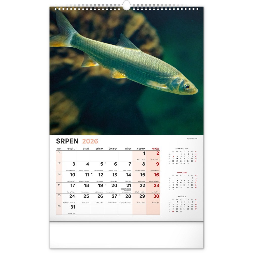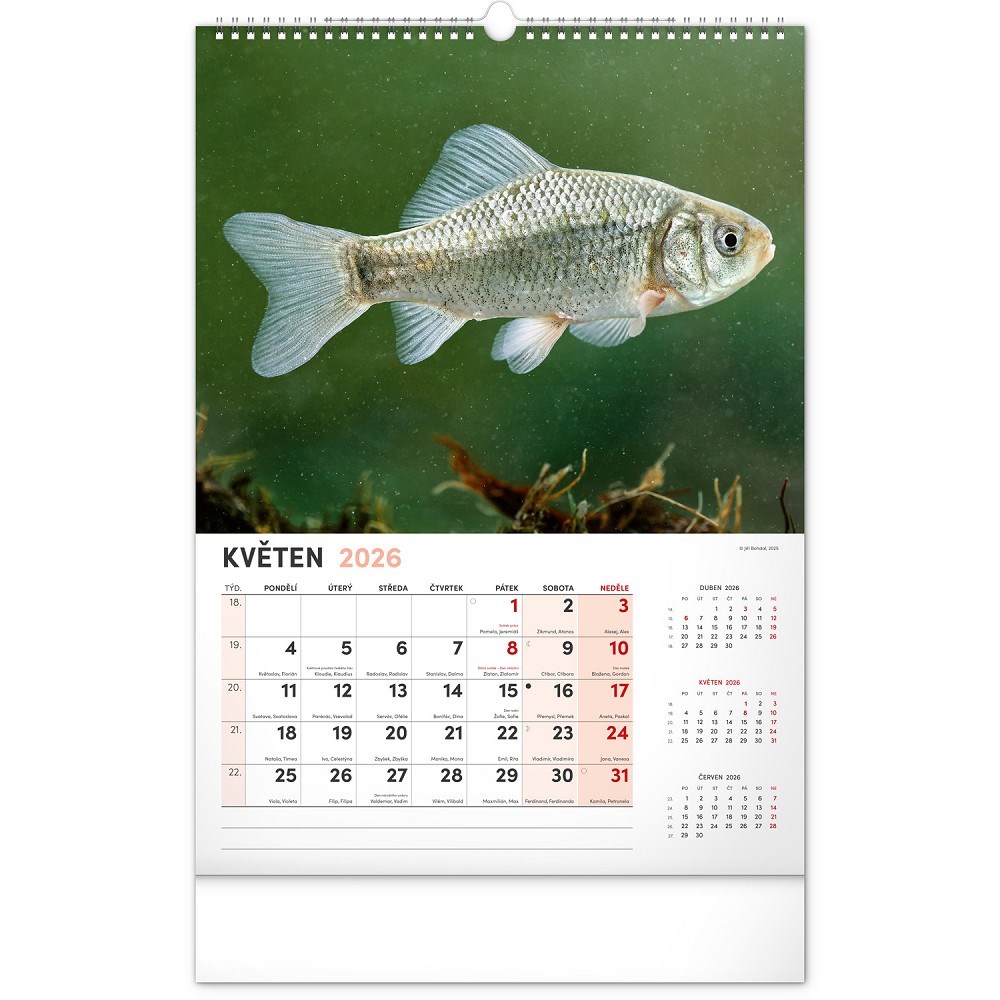 Rozšírené kalendárium obsahuje české mená, sviatky a pamätné dni, trojmesačný prehľad na každej strane a priestor pre poznámky. Nadchne všetkýchvášnivých rybárov a milovníkov vodných plôch.