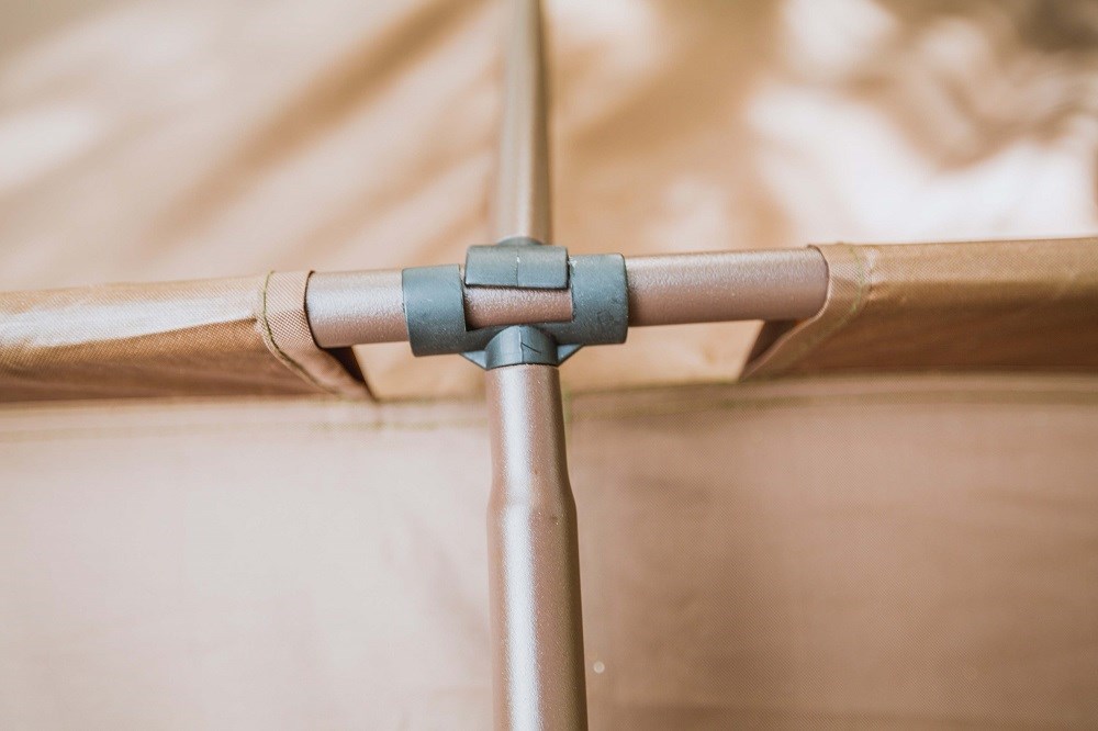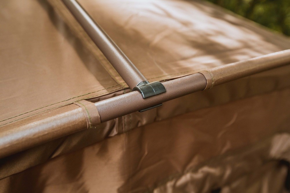 Jednoducho sa do neho zmestia dve veľké lehátka a ešte medzi nimi bude slušný priestor. Okrem toho samozrejme pojme veľa vašich tašiek. Žiadny problém s drobnými zvieratami a hmyzom vďaka podlahe na zips. Je vyrobený zo 100% vodeodolného materiálu 210D, ktorý je špeciálne ošetrený pre bezkonkurenčnú dlhodobú nepremokavosť. Hybridný hliníkový rám robí tento bivak extrémne jednoducho postavitelný napriek veľkým rozmerom a zaisťuje excelentnú stabilitu aj v silnom vetre.