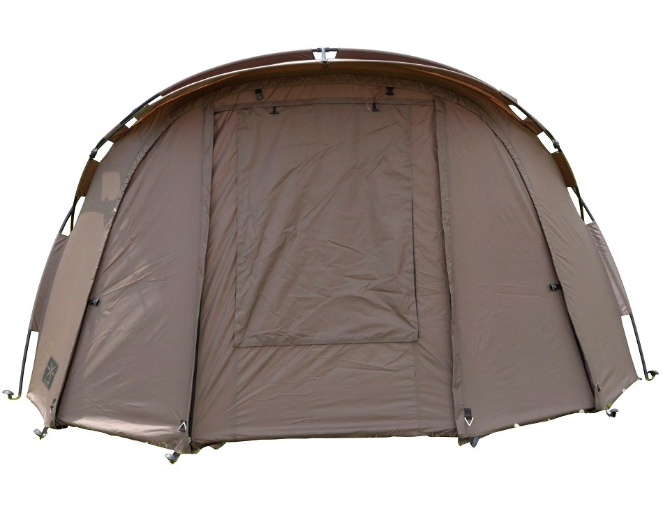 Ako zvláštna možnosť je k dispozícii aj prehoz, ktorý je vyrobený sa rovnakého pevného a vodeodolného materiálu ako bivak. Poskytuje perfektnú ochranu pred dažďom a viac izolácie, čo redukuje problémy s rosením. Vytvára tiež extra miesto v prednej časti, kde môžete skladovať časť vášho vybavenia počas daždivých dní.