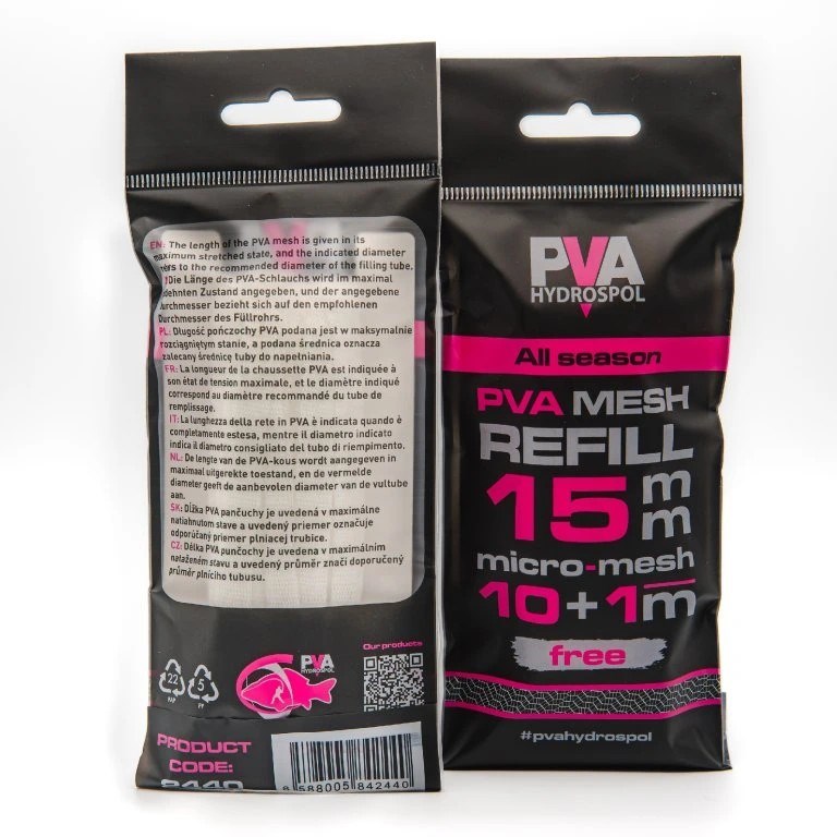 Náhradná PVA pančucha slúži na doplnenie PVA materiálu na plniaci tubus. Variant 35 mm je pletený z 36 kvalitných PVA vlákien.