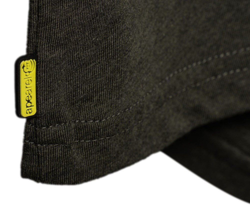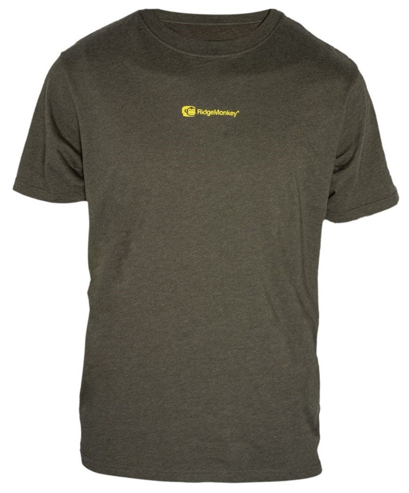Toto tričko má zelenú opukovú farbu a decentné štýlové logo RidgeMonkey.