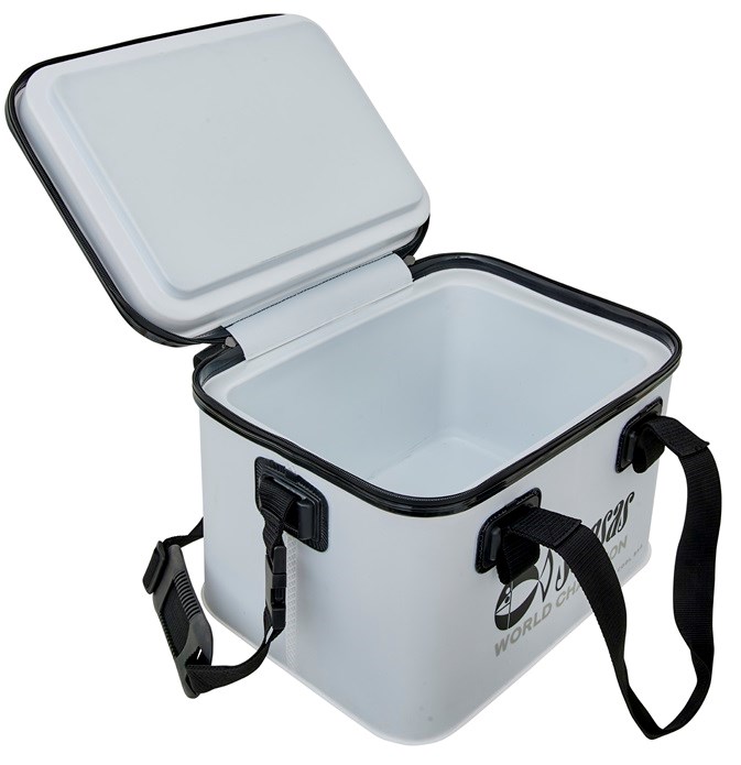 Vďaka integrovanej termo vložke v stenách a bielej farbe uchová vaše nástrahy v chlade a dokonalej kondícii. Navyše sa ľahko čistí. Pre ľahké prenášanie je taška vybavená nastaviteľným a odnímateľným popruhom cez rameno a madlom do ruky. Pevné veko aj konštrukcia držia tvar a nástrahy tak sú v bezpečí aj proti mechanickému poškodeniu. Protišmyková úprava dna.