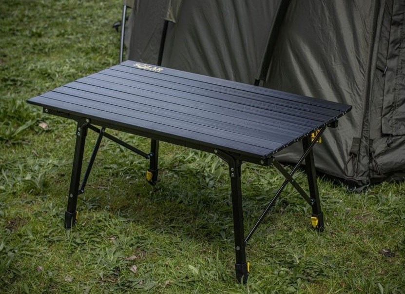 Doska stola sa oddelí od nôh a konzol, zabalia sa a nohy sa zložia naplocho. Krížové stuženie na nohách pomáha stabilite pri nastavení.