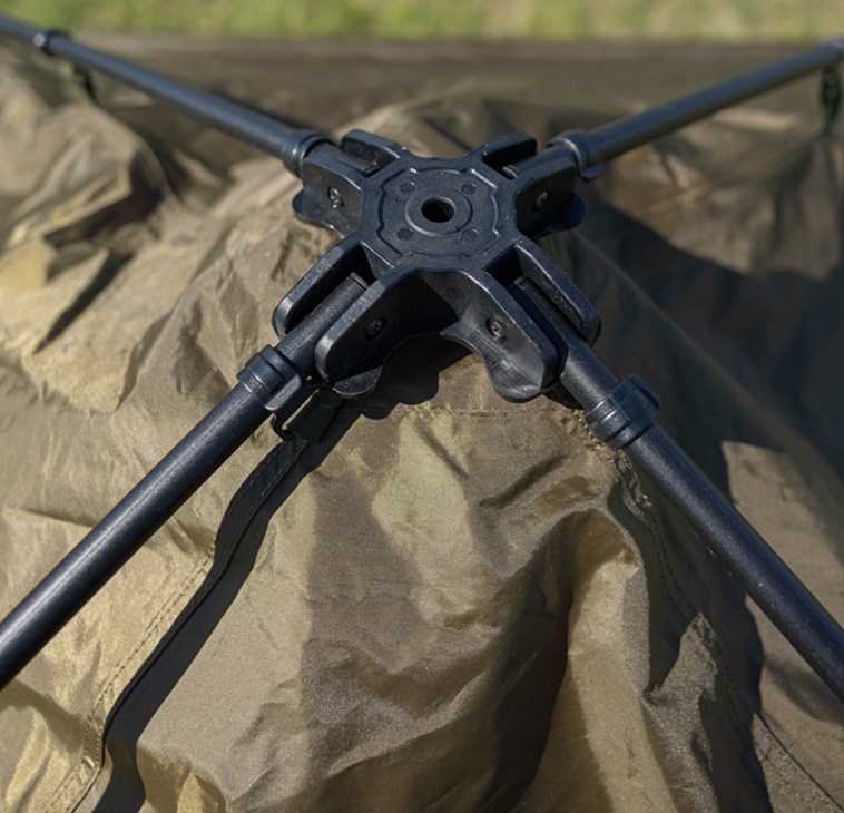 Je vyrobený z nepremokavej hrubostennej tkaniny s integrovaným prikrývkou proti dažďu a kondenzácii pre ešte lepšiu ochranu a komfort. Vodný stĺpec 10000 mm a X-Strong zipsy zaisťujú maximálnu odolnosť a životnosť. Konštrukcia je tvorená teleskopickými hliníkovými 19mm tyčami, ktoré umožňujú ľahké a rýchle zostavenie aj jednou osobou. Navyše znižujú objem pri transporte. Dvojito zosilnené pätky so stabilizačnými kotviacimi šnúrami poskytujú výbornú stabilitu aj za zhoršeného počasia. Všetky postranné panely je možné úplne otvoriť a premeniť tak bivak na vzdušný prístrešok. S bivakom sú dodávané aj dve tyče, ktoré môžete využiť na vytvorenie striešky z predného alebo zadného panelu. Predný aj zadný vchod a oba bočné panely panely obsahujú každý veľké moskytiérové ​​okno pre dokonalú ventiláciu a dobrý výhľad von. Vnútri je bivak novo vybavený štyrmi odnímateľnými vreckami pre prehľadné uloženie vybavenia, závesom na svetlo a malým vreckom na drobnosti alebo príposluch. Súčasťou bivaku je aj hrubostenná odolná odnímateľná podlaha s klipovým uchytením, sada kolíkov a prepravná taška.
