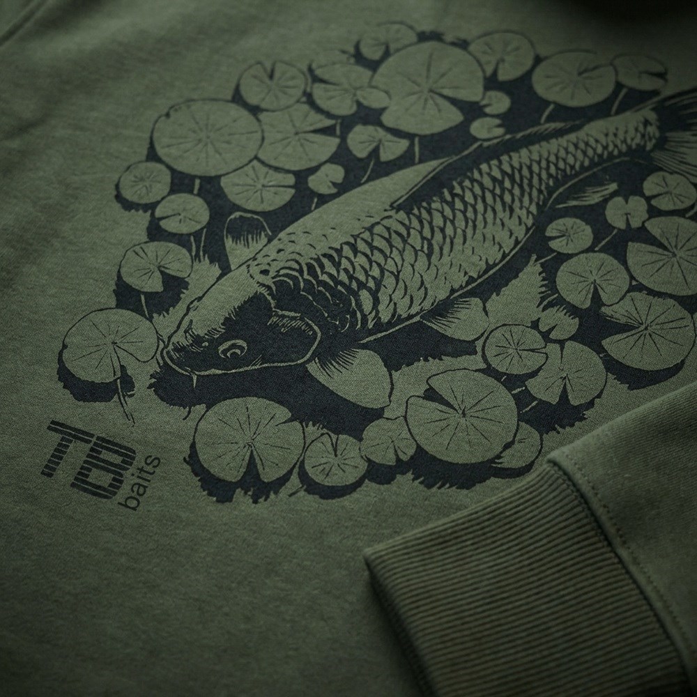 Na prednej strane mikiny nájdete čierne logo TB Baits. Na chrbte je výrazný motív kapra ukrývajúceho sa v leknách. Ide o veľmi pohodlnú mikinu z moderného prémiového materiálu. Voľný strih pre pohodlný pohyb pri vode.