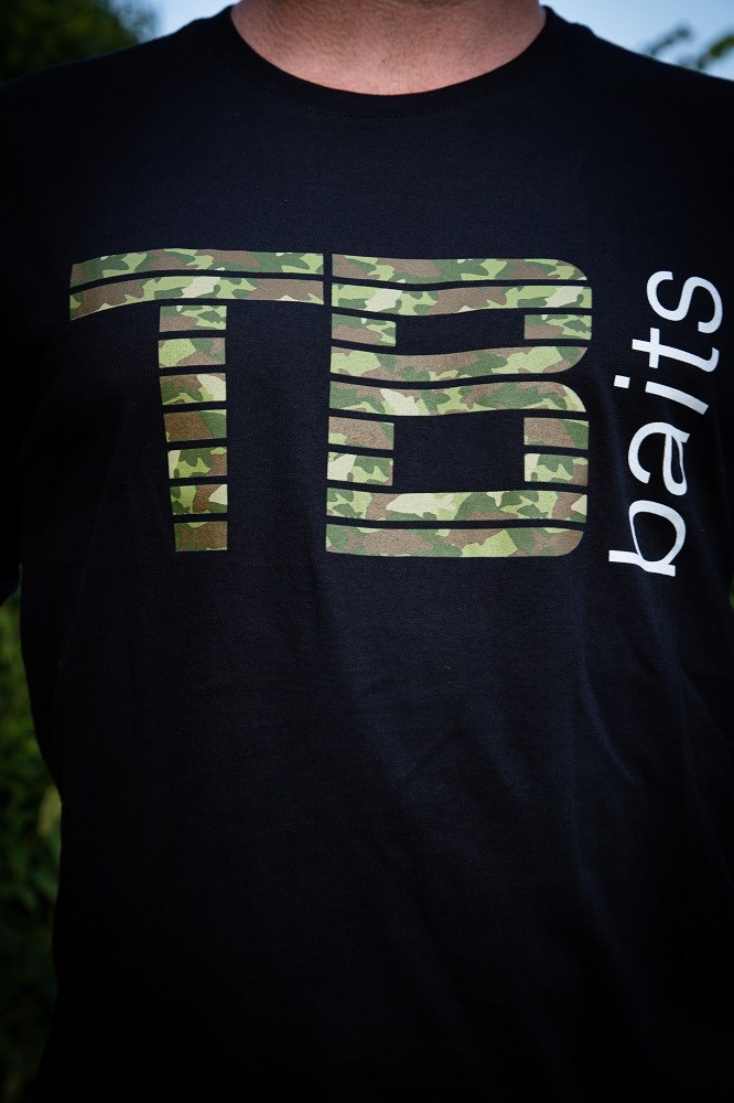 Tričko TB Baits s názvom Carp Camo je postavené na veľkom logu TB Baits, ktoré je tvorené kamuflážou, ktorá bola vytvorená z obrysov kaprov v rôznych farbách. Táto kamufláž bola exkluzívne navrhnutá pre značku TB Baits.