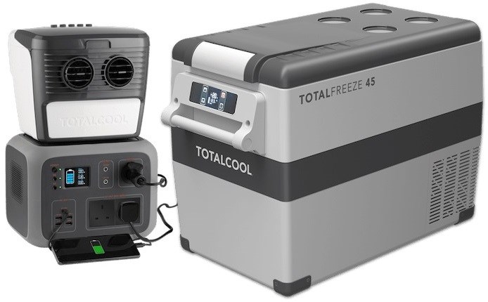 Je veľmi kvalitná s obrovskou funkčnosťou. Dodáva sa s 12V zásuvkou, 4x USB zásuvkou, jednou s rýchlym nabíjaním, novou zásuvkou typu C, 10amp bezdrôtovým nabíjaním hore, 2x DC 12V / 3amp jacky, a pretože má vstavaný menič, má 2x sieťové zásuvky striedavého prúdu (maximálny výkon 30 takže môžete používať zariadenia s nízkou spotrebou energie (napr.notebooky, LED svetlá a niektoré elektrické náradie. Rozsah Totalfreeze bude trvať 30-50 hodín a Totalcool 3000 viac ako 50 hodín v závislosti od rýchlosti ventilátora.