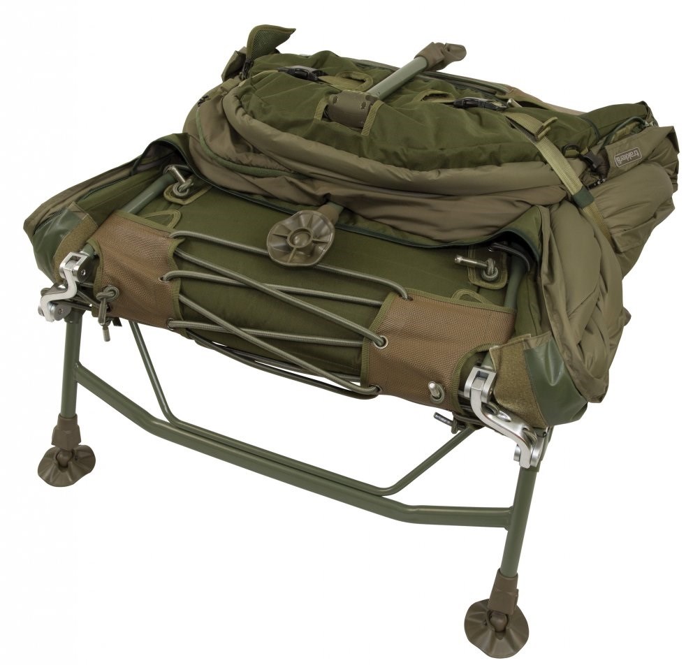 Lehátko má rovnaký revolučný oválny tvar ako predošlá verzia, vďaka čomu poskytuje ležadlo dostatok priestoru v bivaku. Ďalej je ležadlo samozrejme kompletne ploché, čo zaručuje ničím nerušený spánok. Ležadlo je na spodnej strane vybavené šiestimi nastaviteľnými nohami s pätkami proti zaboreniu do zeme. Zmenou ale oproti staršej verzii je, že nohy sú rozložené vo všetkých krajných bodoch lehátka, čím bolo docielené väčšej stability a optimálnemu rozloženiu váhy po celom obvode ležadla. Aby bol celý set čo najviac pohodlný, bolo lehátko doplnené o plne odnímateľný spacák, ktorý má na svojom povrchu hydrofóbnu vrstvu, vďaka čomu sa do spacáku nedostane voda. Ďalej sa vo vnútri spacáku nachádza odnímateľná vložka, a tak si môžete spacák zmeniť z 5 sezónneho, ktorý sa perfektne hodí do chladnejších mesiacov, na 3 sezóny, ktorý využijete v teplejších mesiacoch. Celý vnútrajšok spacáku je vyrobený v príjemného polyesteru, čo dodáva maximálny komfort. Na vrchnej strane sa navyše nachádza úchyt na vankúš. Po celom obvode spacáku boli použité tzv. Trhacie zipsy, vďaka ktorým možno spacák jednoducho a rýchlo otvoriť. Zipsy sú navyše z oboch strán prekryté, čo zabraňuje vnikaniu studeného vzduchu dovnútra a unikaniu tepla zvnútra spacáku. Tento set Levelite Oval Bed System Tall sa perfektne hodí do všetkých vyšších prístreškov Trakker.