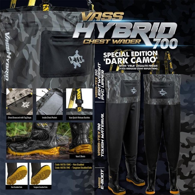 Vďaka kombinácii materiálu Tough Vass-Tex 700 VRLR Stealth finish na spodnej časti a Vass-Tex 350 VRLR na vrchnej časti sú tieto prsačky veľmi odolné, ale aj flexibilné a ľahké. Rybárom je tak ponúknuté to najlepšie z oboch Vass radov bez kompromisov.